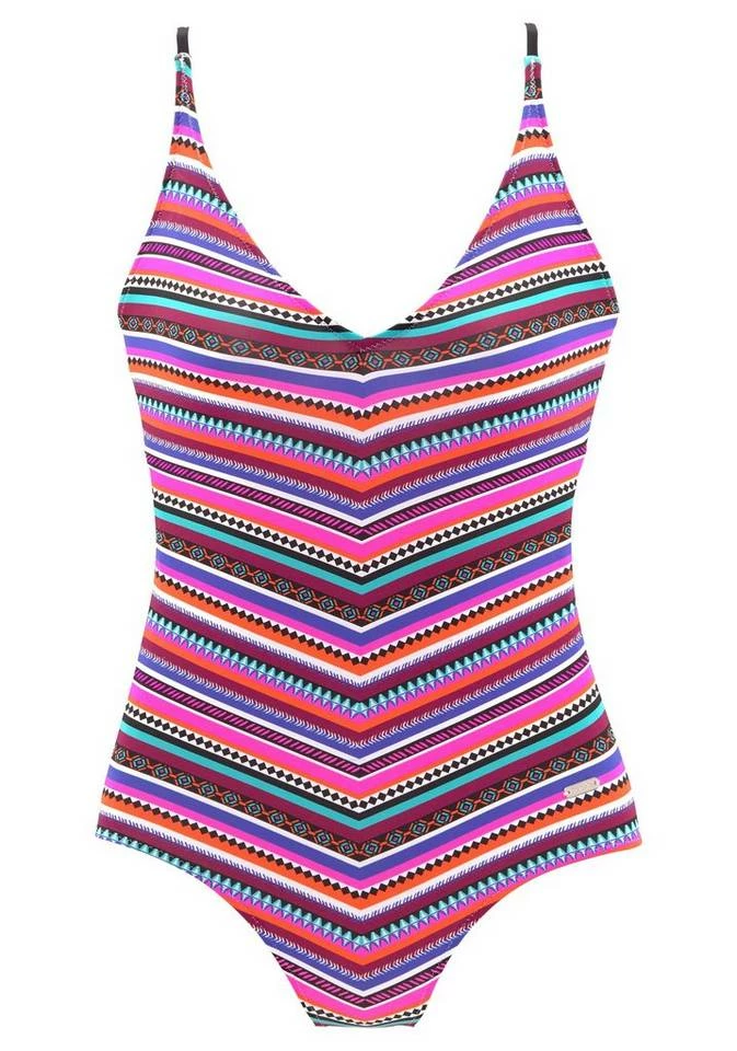 Streifenspaß für heiße Tage: der Badeanzug von Bench präsentiert sich im sportlichen Design mit einem sympathischen Muster im Streifen-Look. Die herausnehmbaren Cups des Einteilers zaubern ein attraktives Dekolleté und die verstellbaren Träger sind am Rücken sportiv gekreuzt. Die Passform der Beachwear macht jede Schwimmsession formstabil mit, das elastische Material schmiegt sich angenehm an den Körper und einem aktiven Tag am Strand steht so nichts im Wege. Mit Zehentrennern, Pareo und Sonnenhut wird der Bummel über die Promenade zum modischen Vergnügen. Für Badefans und echte Beachvibes: der Badeanzug im Streifen-Look von Bench. Obermaterial: 90% Polyamid, 10% Elasthan; Futter: 82% Polyamid, 18% Elasthan.