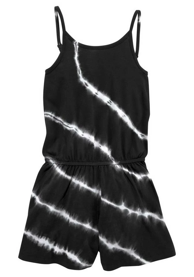 Das Lieblingsmuster der Modemädchen ist zurück! Der Retrotrend mit Hippie-Charme zeigt mit dem angesagten Overall von Bench für Mädchen einen besonders ansprechenden Ausläufer! Die Rede ist vom Batikprint, mit welchem sich der kurze Jumpsuit als absoluter Hingucker positioniert. Praktischen Stauraum für den Schlüssel oder den Schokoriegel zwischendurch geben die funktionalen, seitlichen Eingrifftaschen. Dank praktischer Stilkomponenten wie den filigranen, verstellbaren Trägern und dem elastischen Gummizug auf Taillenhöhe ist für individualisierbaren Komfort gesorgt. Auch dank der soften Haptik des Jerseys kann sich dein Nachwuchs in dem figurumspielenden Einteiler rundherum wohlfühlen. Die Markenqualität des Artikels wird zudem durch den auffälligen Labelprint auf Brusthöhe optisch betont. Sommerfrischen Style versprüht das Ensemble mit Gladiatorensandalen, einer Basttasche sowie einer Sonnenbrille. Gönn deiner Tochter mit dem Overall von Bench ein unverzichtbares Fashion-Piece für modische Girls!