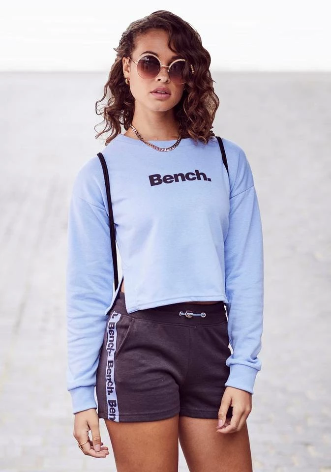 Schnapp dir dein It-Piece. Das kurze Sweatshirt von Bench wird garantiert zum unverzichtbaren Basic für deine Looks. Der Sweater aus einem hochwertigen Baumwoll-Mix hat modisch so einiges zu bieten: Neben einem superbequemen, weiten Rundhalsauschnitt und lässig überschnittenen Ärmeln sorgen seine kurze Form und die seitlichen Schlitze für modische Finesse. Die elastischen Bündchen an den Ärmeln machen jede deiner Bewegungen mit und ein konstrastfarbener Logoprint auf Brusthöhe setzt modische Akzente. Ob zu Jeans oder Shorts – das kurze Sweatshirt von Bench rockt!