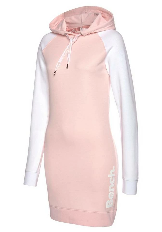 Eine gekonnte Mischung von Gemütlichkeit und Weiblichkeit stellt das Sweatkleid von Bench dar. Das Kleid ist aus einer angenehmen Baumwoll-Polyester-Mischung gefertigt und weiß durch seinen Tragekomfort zu überzeugen. Neben einer coolen Kapuze mit Kordelzug überzeugt es auch durch Rippbündchen an Saum und Ärmeln. Besonders markant ist der Logodruck, der sowohl seitlich als auch auf den Kordeln zu finden ist. Mit einer Strumpfhose oder Leggings ist schnell ein toller Look um das Sweatkleid von Lascana gefunden, der nicht nur auf der Couch, sondern auch auf langen Reisen überzeugen kann.