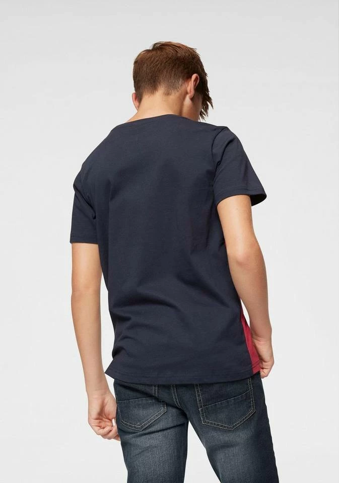 Stilbewusste Jungs wissen das T-Shirt von Bench sehr zu schätzen; denn das Colorblocking-Design, das den Logoschriftzug sehr cool integriert, macht das Shirt zu einem auffälligen Hingucker. Die bequeme Basicpassform mit Rundhalsausschnitt und kurzen Ärmeln bekommt durch die weiche Baumwollmischung komfortablen Support. Das dreifarbige Colorblocking-Design spiegelt den lässigen Look der Marke wider und kommt natürlich hervorragend zu Bluejeans zur Geltung. Na logo – das T-Shirt von Bench!