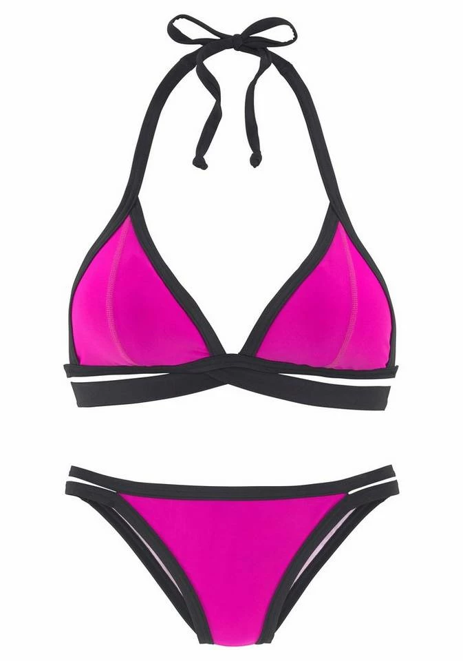 Der Triangelbikini von Bench fällt auf! Die coolen Kontrasteinsätze ziehen die Blicke auf sich. Das zusätzliche Bindeband unter der Brust gibt dem Triangeltop zusätzlichen Halt. Die herausnehmbaren Cups entscheiden über mehr oder weniger Dekolleté. Die Neckholderträger werden im Nacken gebunden und am Rücken verschlossen. So lässt sich das Bikini-Oberteil nach Belieben einstellen. Die Bikinipants zeichnen sich durch die zwei breiteren Bänder aus. Immer cool und lässig gestylt – mit dem angesagten Triangelbikini von Bench. Obermaterial aus 80% Polyamid, 20% Elasthan. Futter aus 100% Polyester.